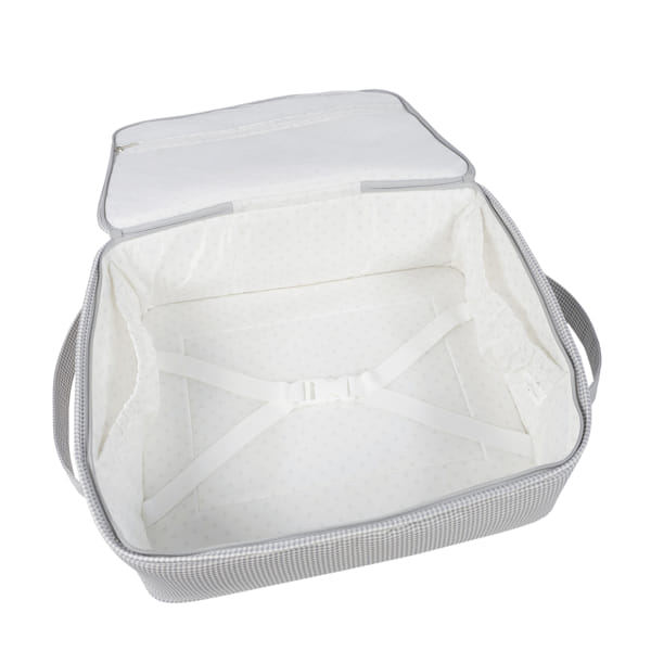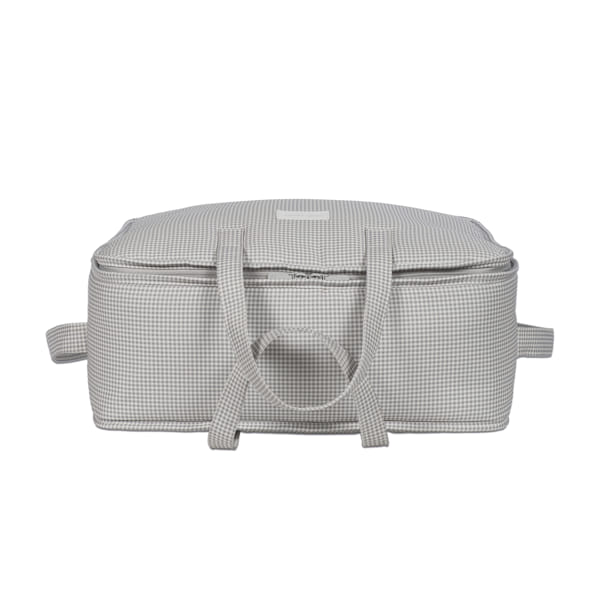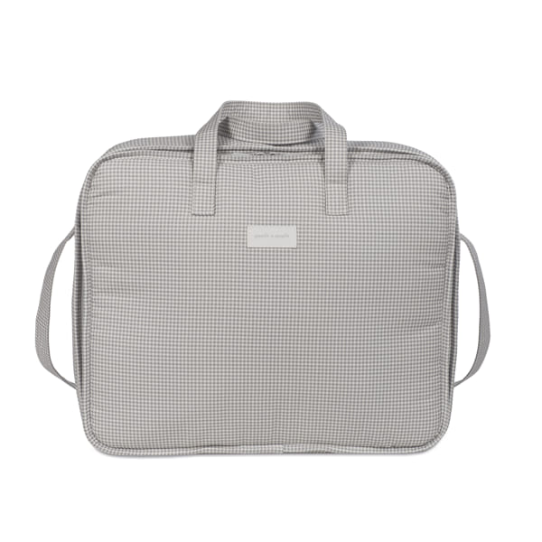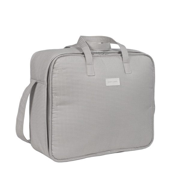 La valigia per neonati Little Bloom Vichy grigia di Pasito a pasito è la borsa perfetta per l’ospedale/clinica, un modello unico e di grande stile pensato appositamente per portare con te tutto ciò di cui hai bisogno per te, il papà e il bambino. È realizzata in tela di cotone 100% con una delicata stampa a quadri. Il trattamento water resistant la rende impermeabile, garantendo protezione e durata nell’uso quotidiano. La sua forma rettangolare offre la comodità di avere tutto il necessario (cambi o accessori) a portata di mano durante il giorno della nascita del bambino. È un modello semplice, moderno e pratico che offre una grande capienza per trasportare molte cose ed è dotato di una pratica apertura per facilitare la ricerca di qualsiasi cosa tu abbia riposto al suo interno. È dotata di una lunga maniglia per essere portata a tracolla e di due maniglie corte per essere trasportata a mano, se preferisci. Finiture di qualità. La valigia per l’ospedale ha una fodera interna con elastici per fissare i vestiti e si chiude in modo sicuro con una cerniera su due lati che permette di aprire completamente il coperchio. Realizzata con materiali di alta qualità, privi di coloranti azoici, ftalati e sostanze nocive per la salute. Inoltre, può essere lavata a mano o in lavatrice a una temperatura massima di 30º. I prodotti per bambini di Pasito a Pasito hanno un design molto diverso da tutti gli altri. Le loro collezioni sono caratterizzate da un lavoro accurato nei dettagli, sempre pensato da un punto di vista pratico. Utilizzano materiali di prima qualità per sottolineare l’eleganza e l’armonia di ogni singolo pezzo. I nostri modelli sono esclusivi e dallo stile inconfondibile, pensati per le mamme moderne che hanno buon gusto e apprezzano i dettagli tanto quanto noi. Specifiche: Materiali: 100% cotone. Misure: 44X36X16 cm.