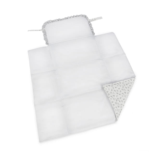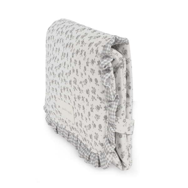El cambiador para bebé Little Bloom Flor gris de Pasito a pasito elaborado elaborado en loneta de algodón 100% con un delicado estampado de flores, es un modelo muy cómodo, práctico y fácil de transportar. Un patrón especialmente ideado para utilizarlo cuando necesites cambiar a tu bebé. Es plegable para facilitar su trasladarlo a todos lados. Es un diseño tan elegante como funcional, porque se presenta en formato plegado para hacerlo portátil. Cuenta con cintas de agarre de cierre para mantener el cambiador cerrado y así se reduce su espacio para llevarlo dentro de la bolsa de maternidad. Acabados de calidad. El cambiador de bebé cuenta con un forro interior acolchado e impermeable para hacerlo más fácil de limpiar una vez termines de usarlo y así evitar que se acumulen olores en el interior. Está fabricado con materiales de gran calidad, libres de colorantes azoicos, ftalatos y sustancias nocivas para la salud. Además se puede lavar a mano o a máquina a temperaturas de hasta 30º. Los productos para bebé de Pasito a Pasito cuentan con un diseño muy diferente a todos los demás; gracias a sus colecciones más trabajadas, caprichosas y a la vez prácticas, que utilizan materiales de primera calidad para remarcar la elegancia y la armonía en cada una de sus piezas. Nuestros modelos son exclusivos y de estilo inconfundible, pensados en madres actuales que gozan de buen gusto y que aprecian los detalles tanto como nosotros. Especificaciones: Materiales: 100% algodón/Interior 100% pvc libre de ftalatos. Medidas: 50×70 cm.